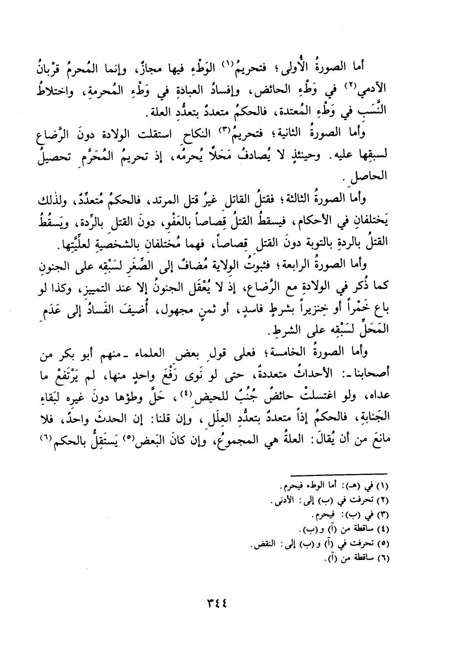 أَمَّا الصُّورَةُ الْأُولَى; فَتَحْرِيمُ الْوَطْءِ فِيهَا مَجَازٌ، وَإِنَّمَا الْمُحَرَّمُ قُرْبَانُ الْآدَمِيِّ فِي وَطْءِ الْحَائِضِ، وَإِفْسَادُ الْعِبَادَةِ فِي وَطْءِ الْمُحْرِمَةِ، وَاخْتِلَاطُ النَّسَبِ فِي وَطْءِ الْمُعْتَدَّةِ، فَالْحُكْمُ مُتَعَدِّدٌ بِتَعَدُّدِ الْعِلَّةِ.