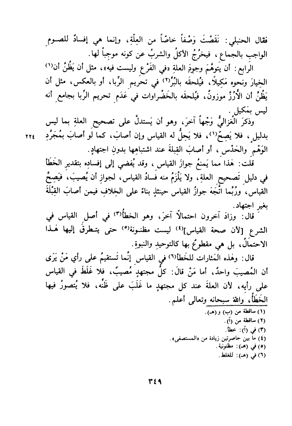 قَالَ: وَهَذِهِ الْمَثَارَاتُ لِلْخَطَأِ فِي الْقِيَاسِ إِنَّمَا تَسْتَقِيمُ عَلَى رَأْيِ مَنْ يَرَى أَنَّ الْمُصِيبَ وَاحِدٌ، أَمَّا مَنْ قَالَ: كُلُّ مُجْتَهِدٍ مُصِيبٌ، فَلَا غَلَطَ فِي الْقِيَاسِ عَلَى رَأْيِهِ، لِأَنَّ الْعِلَّةَ عِنْدَ كُلِّ مُجْتَهِدٍ مَا غَلَبَ عَلَى ظَنِّهِ، فَلَا يُتَصَوَّرُ فِيهَا الْخَطَأُ، وَاللَّهُ - سُبْحَانَهُ وَتَعَالَى - أَعْلَمُ.