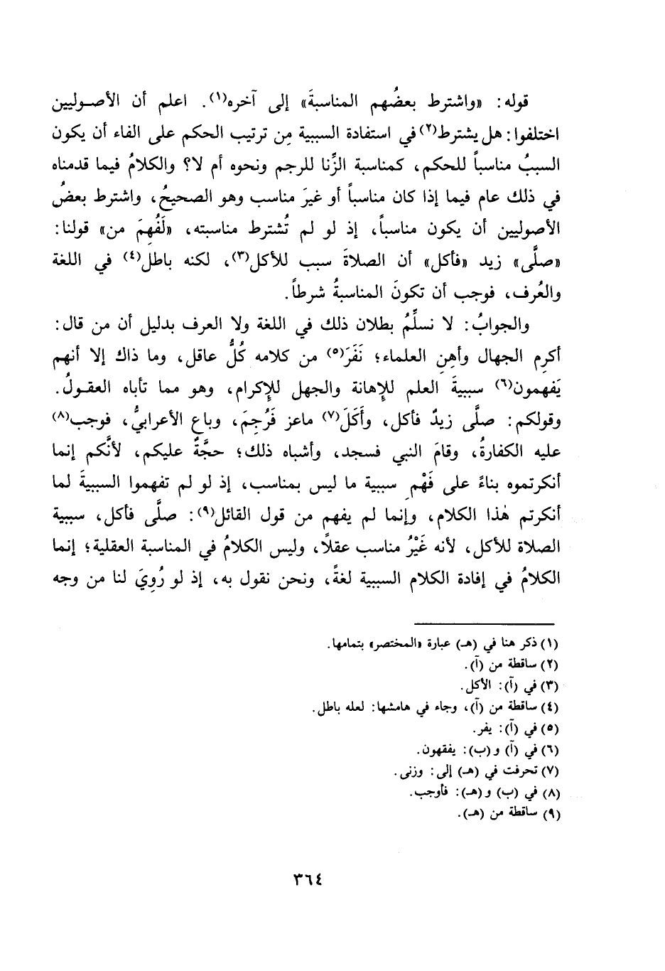 وَقَوْلُكُمْ: صَلَّى زَيْدٌ فَأَكَلَ، وَأَكَلَ مَاعِزٌ فَرُجِمَ، وَبَاعَ الْأَعْرَابِيُّ، فَوَجَبَ عَلَيْهِ الْكَفَّارَةُ، وَقَامَ النَّبِيُّ فَسَجَدَ، وَأَشْبَاهُ ذَلِكَ; حُجَّةٌ عَلَيْكُمْ، لِأَنَّكُمْ إِنَّمَا أَنْكَرْتُمُوهُ بِنَاءً عَلَى فَهْمِ سَبَبِيَّةِ مَا لَيْسَ بِمُنَاسِبٍ، إِذْ لَوْ لَمْ تَفْهَمُوا السَّبَبِيَّةَ لَمَا أَنْكَرْتُمْ هَذَا الْكَلَامَ، وَإِنَّمَا لَمْ يُفْهَمْ مِنْ قَوْلِ الْقَائِلِ: صَلَّى فَأَكَلَ، سَبَبِيَّةَ الصَّلَاةِ لِلْأَكْلِ، لِأَنَّهُ غَيْرُ مُنَاسِبٍ عَقْلًا، وَلَيْسَ الْكَلَامُ فِي الْمُنَاسَبَةِ الْعَقْلِيَّةِ; إِنَّمَا الْكَلَامُ فِي إِفَادَةِ الْكَلَامِ السَّبَبِيَّةَ لُغَةً، وَنَحْنُ نَقُولُ بِهِ، إِذْ لَوْ رُوِيَ لَنَا مِنْ وَجْهٍ
