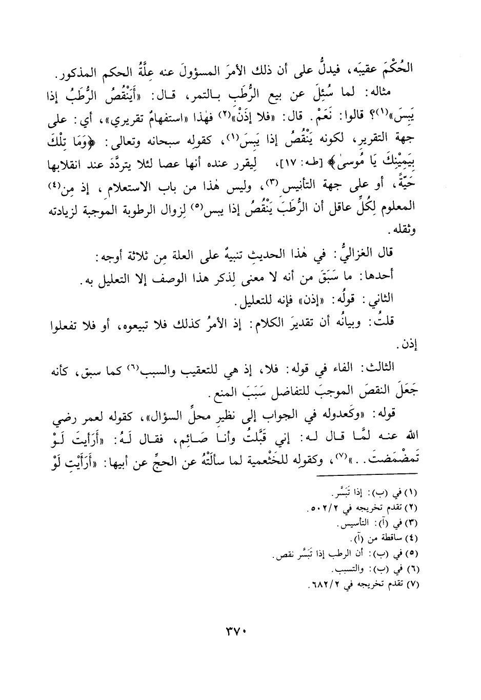 قَالَ الْغَزَالِيُّ: فِي هَذَا الْحَدِيثِ تَنْبِيهٌ عَلَى الْعِلَّةِ مِنْ ثَلَاثَةِ أَوْجُهٍ: