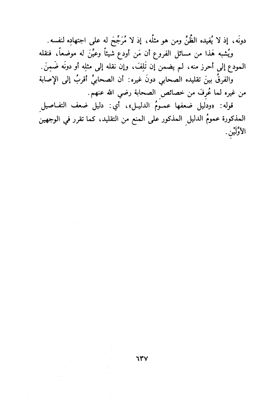 وَالْفَرْقُ بَيْنَ تَقْلِيدِهِ الصَّحَابِيَّ دُونَ غَيْرِهِ: أَنَّ الصَّحَابِيَّ أَقْرَبُ إِلَى الْإِصَابَةِ مِنْ غَيْرِهِ لِمَا عُرِفَ مِنْ خَصَائِصِ الصَّحَابَةِ رَضِيَ اللَّهُ عَنْهُمْ.