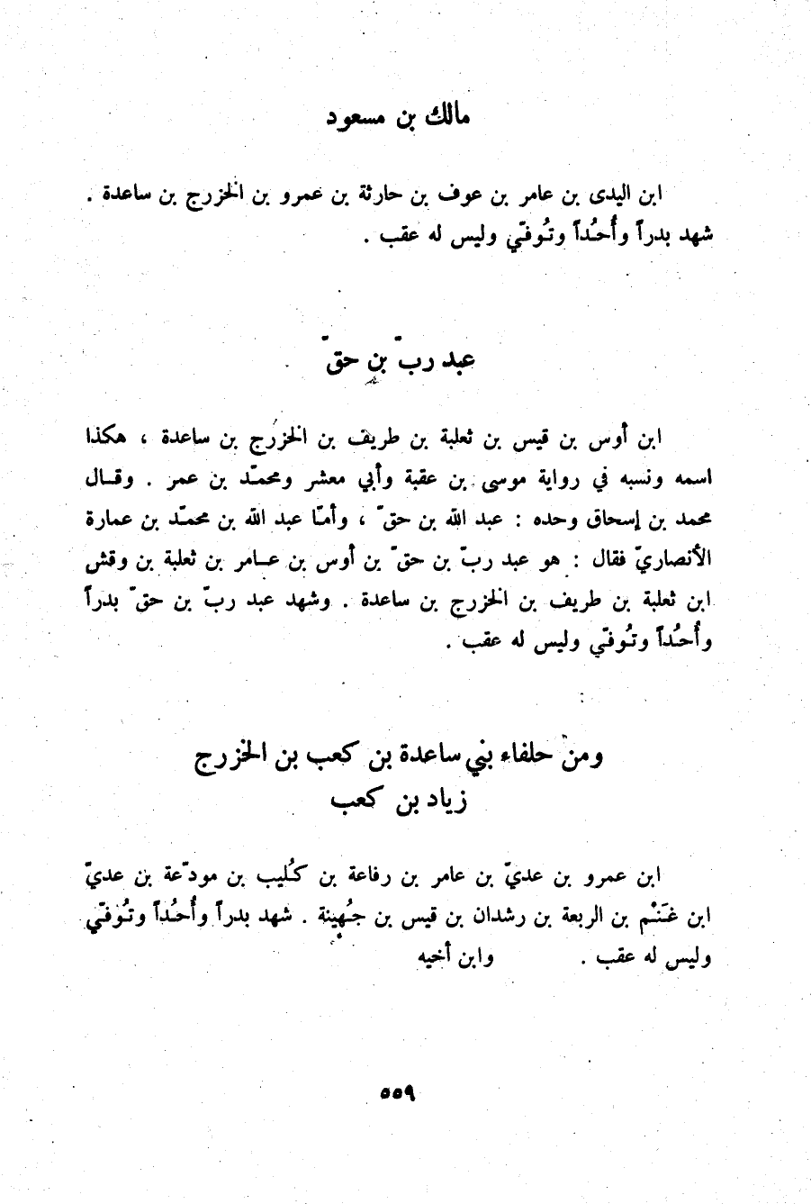 §مَالِكُ بْنُ مَسْعُودِ بْنِ الْبَدِيِّ بْنِ عَامِرِ بْنِ عَوْفِ بْنِ حَارِثَةَ بْنِ عَمْرِو بْنِ الْخَزْرَجِ بْنِ سَاعِدَةَ، شَهِدَ بَدْرًا، وَأُحُدًا وَتُوُفِّيَ وَلَيْسَ لَهُ عَقِبٌ.
