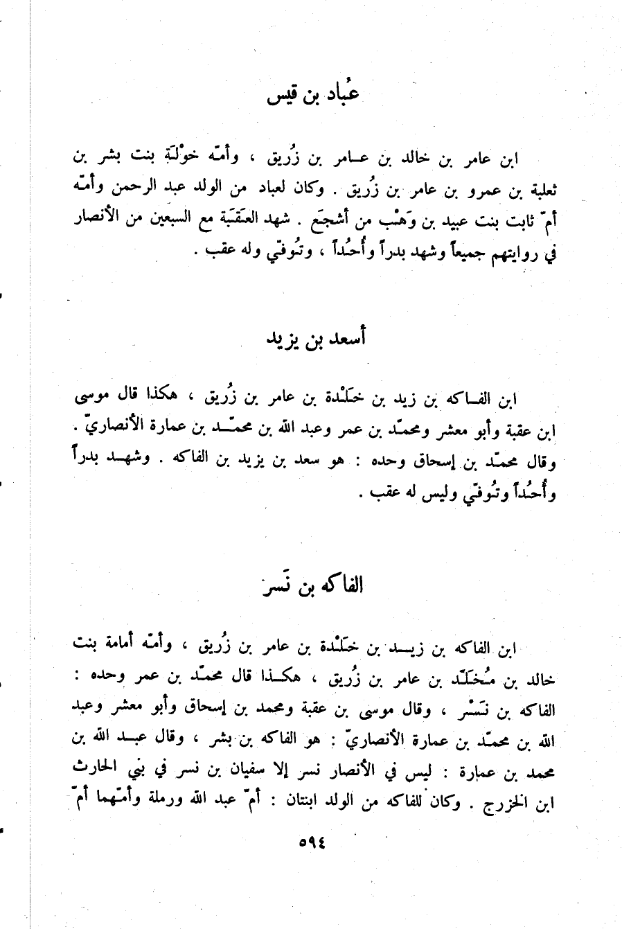 §الْفَاكِهُ بْنُ نَسْرِ بْنِ الْفَاكِهِ بْنِ زَيْدِ بْنِ خَلْدَةَ بْنِ عَامِرِ بْنِ زُرَيْقٍ، وَأُمُّهُ أُمَامَةُ بِنْتُ خَالِدِ بْنِ مُخَلَّدِ بْنِ عَامِرِ بْنِ زُرَيْقٍ. هَكَذَا قَالَ مُحَمَّدُ بْنُ عُمَرُ وَحْدَهُ: الْفَاكِهُ بْنُ نَسْرٍ، وَقَالَ مُوسَى بْنُ عُقْبَةَ وَمُحَمَّدُ بْنُ إِسْحَاقَ وَأَبُو مَعْشَرٍ وَعَبْدُ اللَّهِ بْنُ مُحَمَّدِ بْنِ عُمَارَةَ الْأَنْصَارِيُّ: هُوَ الْفَاكِهُ بْنُ بِشْرٍ، وَقَالَ عَبْدُ اللَّهِ بْنُ مُحَمَّدِ بْنِ عُمَارَةَ: لَيْسَ فِي الْأَنْصَارِ نَسْرٌ إِلَّا سُفْيَانُ بْنُ نَسْرٌ فِي بَنِي الْحَارِثِ بْنِ الْخَزْرَجِ، وَكَانَ لِلْفَاكِهِ مِنَ الْوَلَدِ ابْنَتَانِ أُمُّ عَبْدِ اللَّهِ، وَرَمْلَةُ وَأُمُّهُمَا أُمُّ -[595]- النُّعْمَانِ بِنْتُ النُّعْمَانِ بْنِ خَلْدَةَ بْنِ عَمْرِو بْنِ أُمَيَّةَ بْنِ عَامِرِ بْنِ بَيَاضَةَ، وَشَهِدَ الْفَاكِهُ بَدْرًا، وَتُوُفِّيَ وَلَيْسَ لَهُ عَقِبٌ.