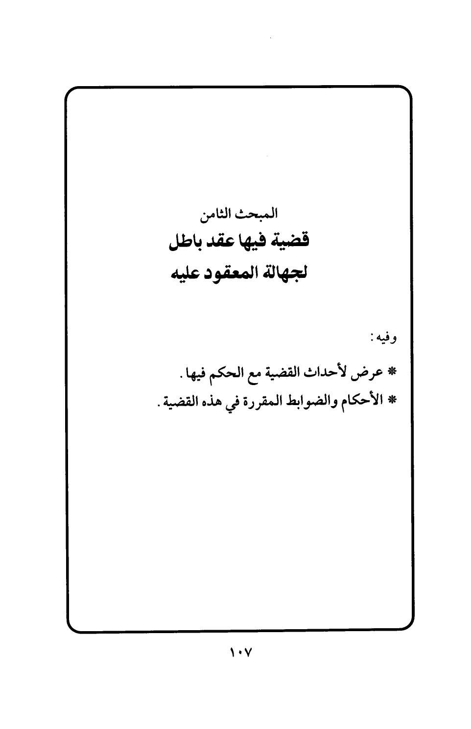 المبحث الثامن قضية فيها عقد باطل لجهالة المعقود عليه
