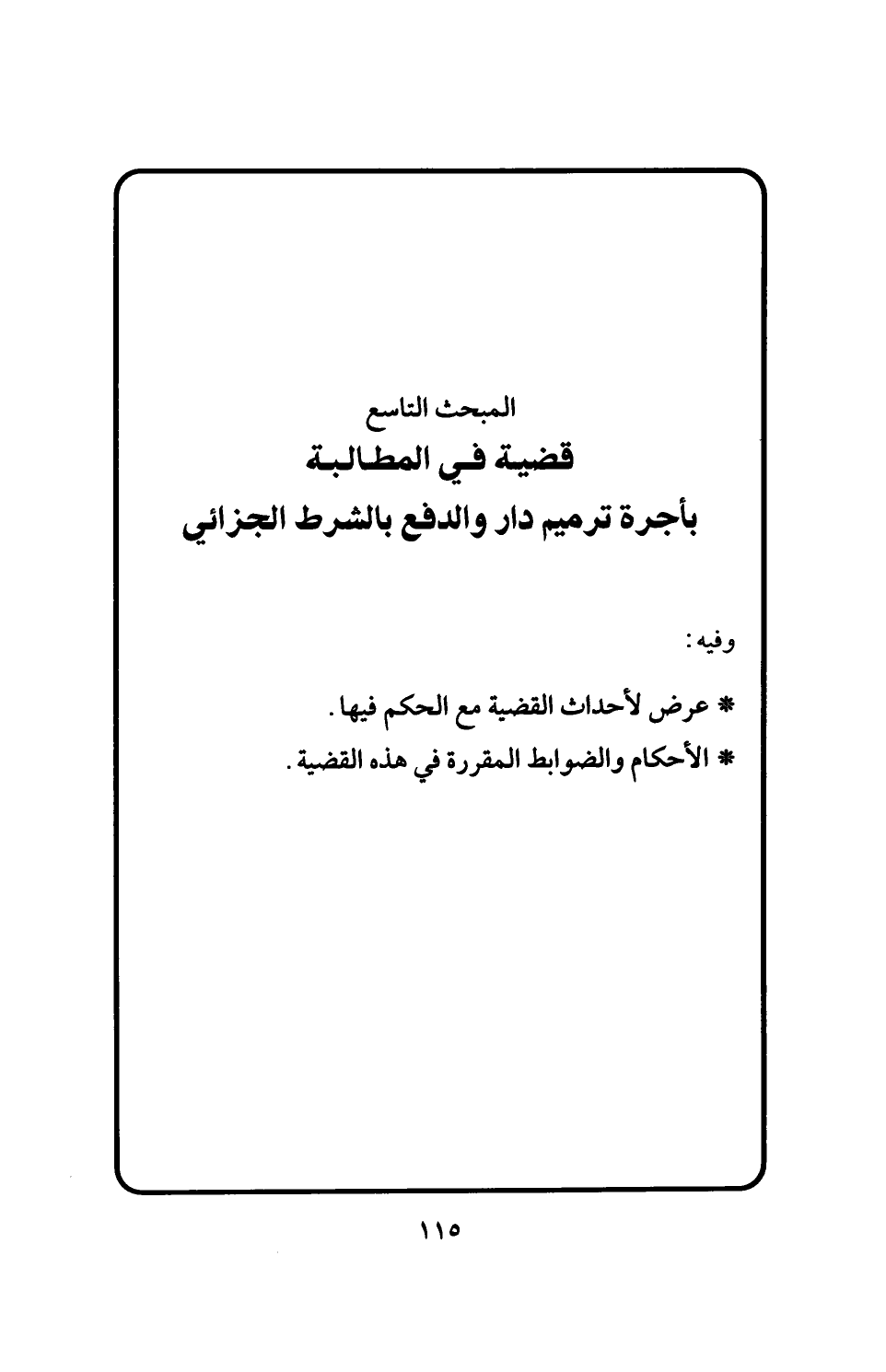 المبحث التاسع قضية في المطالبة بأجرة ترميم دار والدفع بالشرط الجزائي