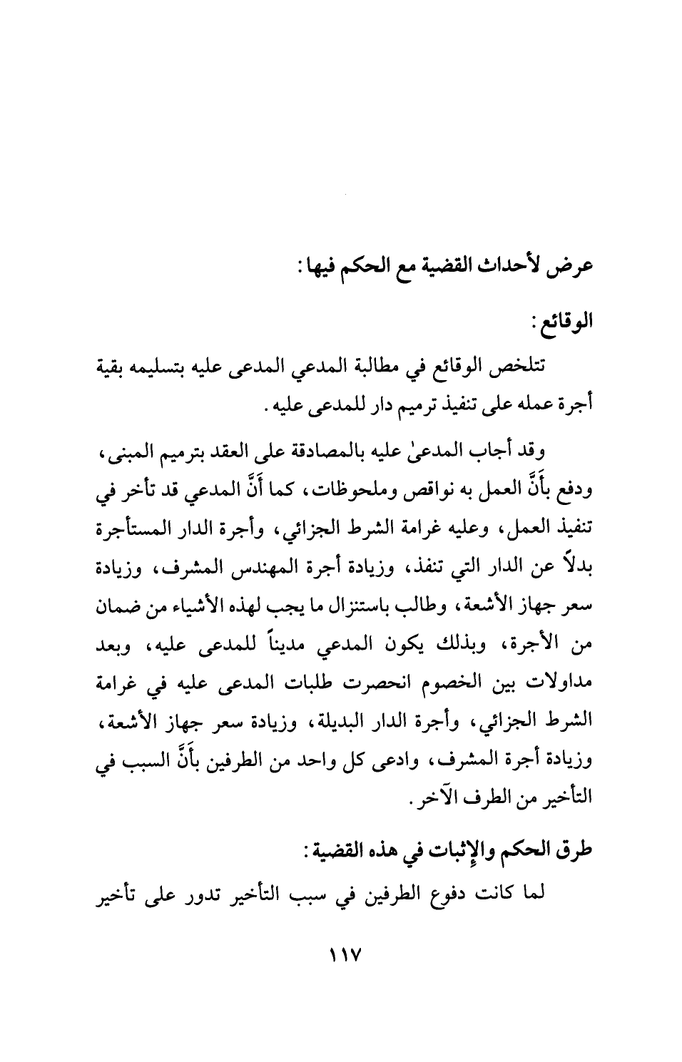 تتلخص الوقائع في مطالبة المدعي المدعى عليه بتسليمه بقية أجرة عمله على تنفيذ ترميم دار للمدعى عليه.