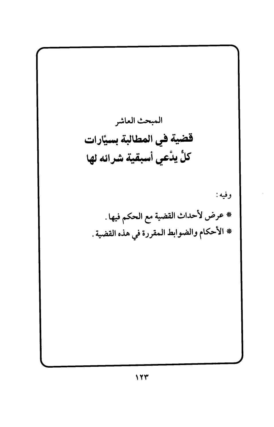 المبحث العاشر قضية في المطالبة بسيَّارات كلٌّ يدَّعي أسبقية شرائه لها