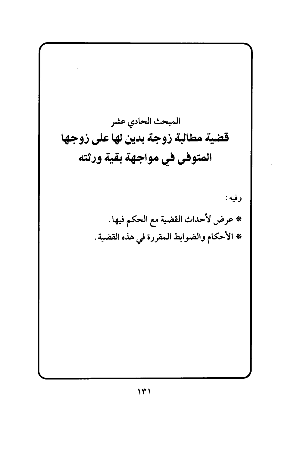 المبحث الحادي عشر قضية مطالبة زوجة بدين لها على زوجها المتوفى في مواجهة بقية ورثته