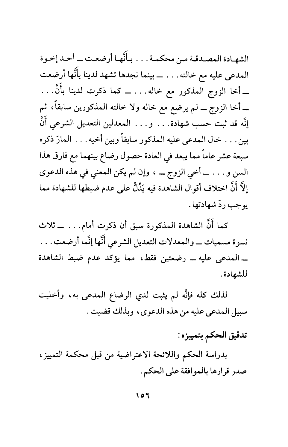 لذلك كله فإنَّه لم يثبت لدي الرضاع المدعى به، وأخليت سبيل المدعى عليه من هذه الدعوى، وبذلك قضيت.