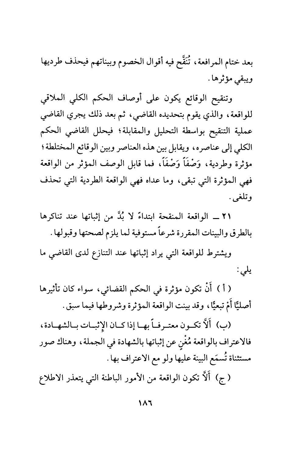 21 - الواقعة المنقحة ابتداءَ لا بُدَّ من إثباتها عند تناكرها بالطرق والبينات المقررة شرعًا مستوفية لما يلزم لصحتها وقبولها.