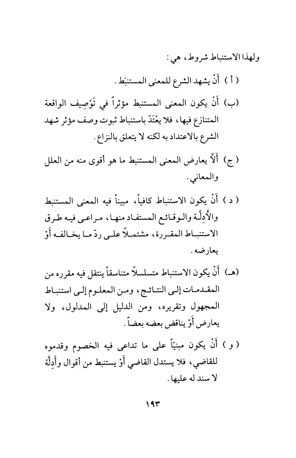(د) أَنْ يكون الاستنباط كافيًا، مبينًا فيه المعنى المستنبط والأَدِلَّة والوقائع المستفاد منها، مراعى فيه طرق الاستنباط المقررة، مشتملًا على ردّ ما يخالفه أَوْ يعارضه.