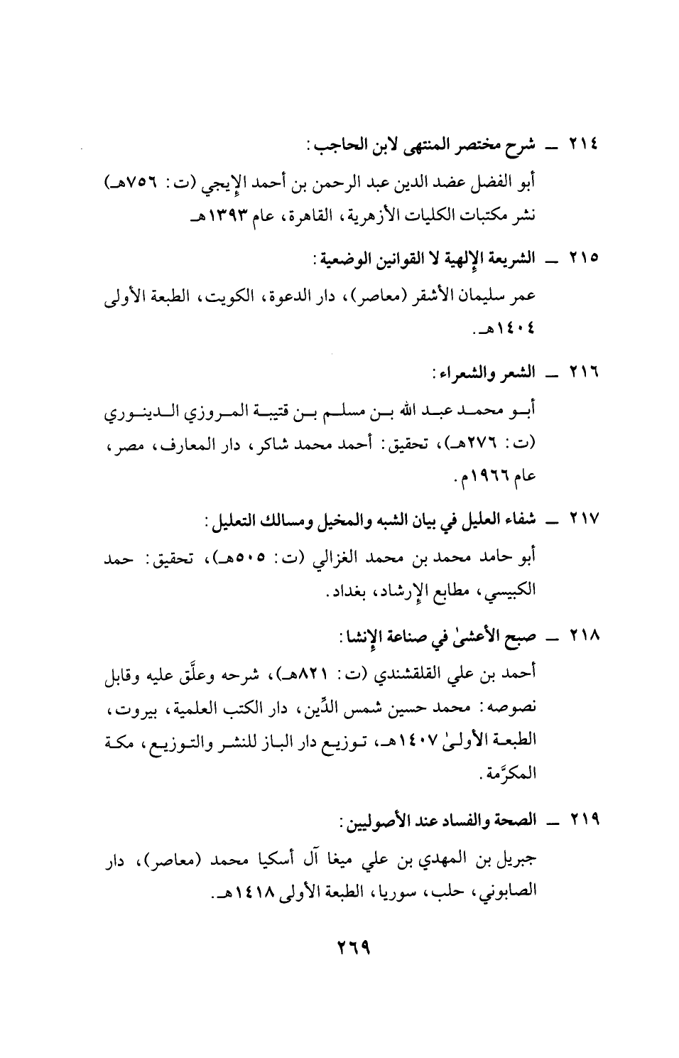 217 - شفاء العليل في بيان الشبه والمخيل ومسالك التعليل: