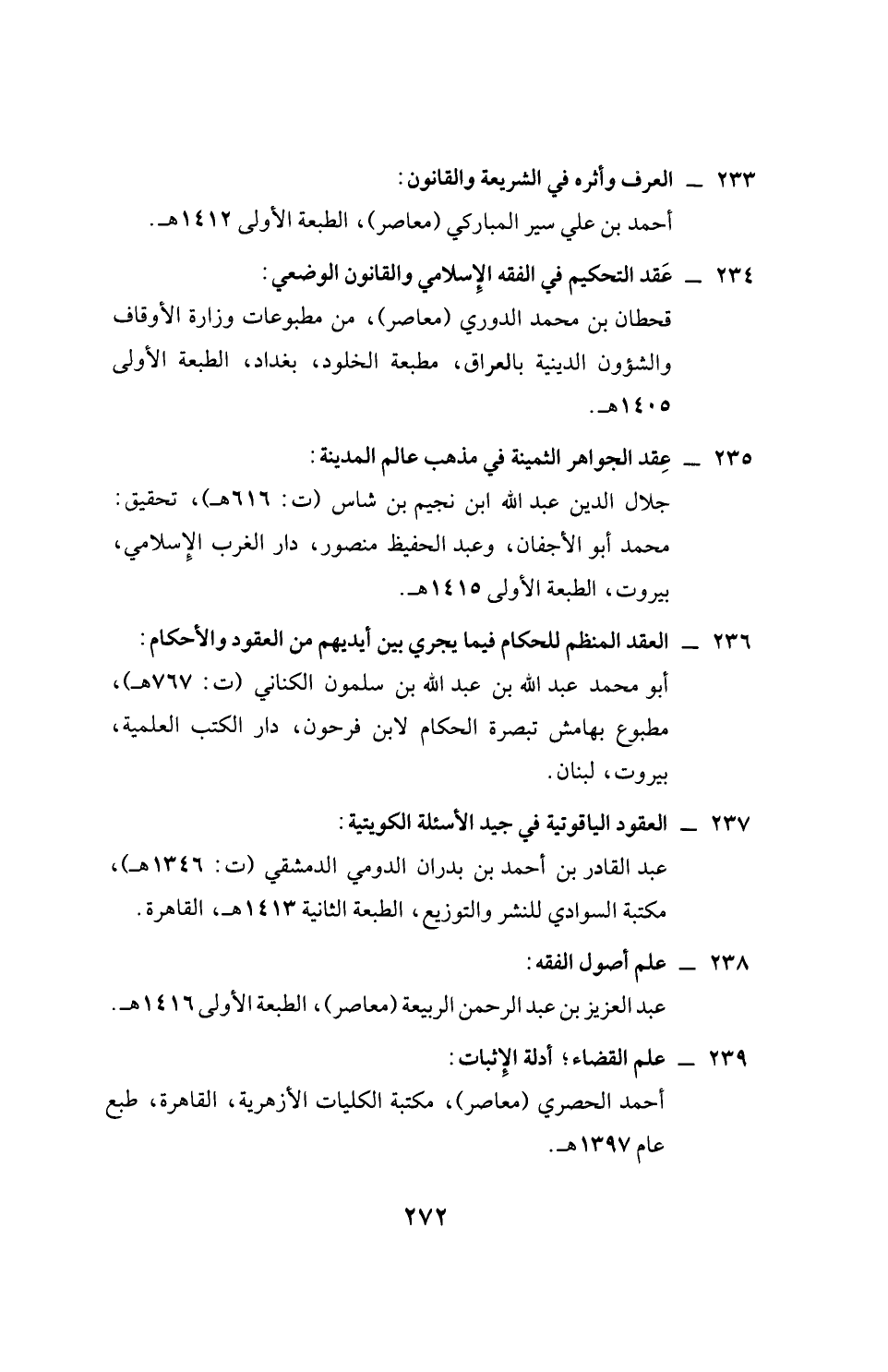 236 - العقد المنظم للحكام فيما يجري بين أيديهم من العقود والأحكام: