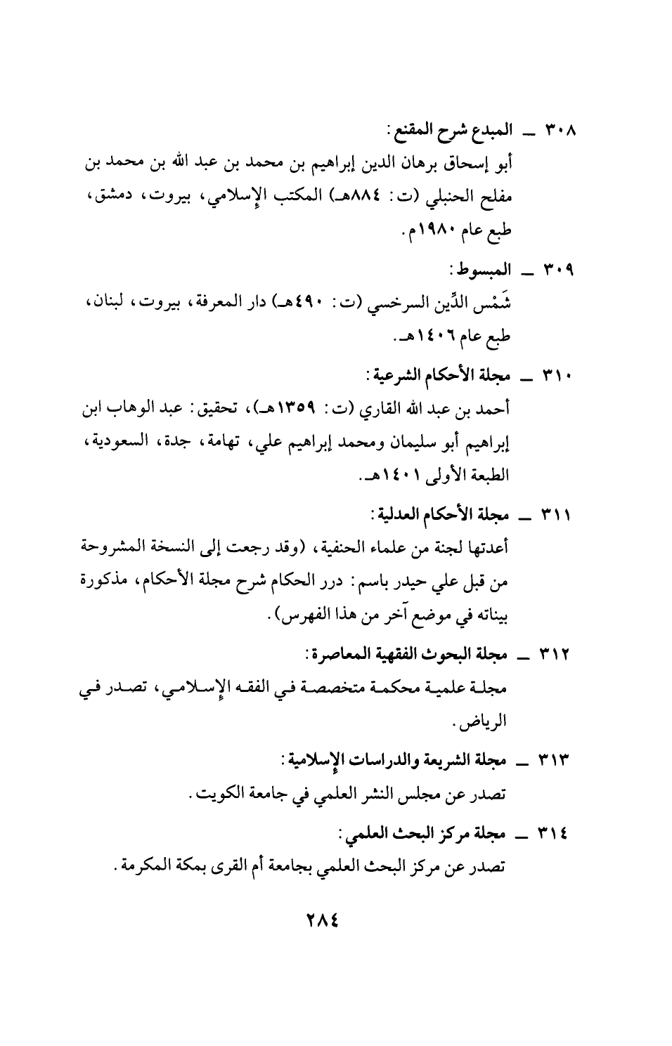 أعدتها لجنة من علماء الحنفية، (وقد رجعت إلى النسخة المشروحة من قبل علي حيدر باسم: درر الحكام شرح مجلة الأحكام، مذكورة بيناته في موضع آخر من هذا الفهرس).