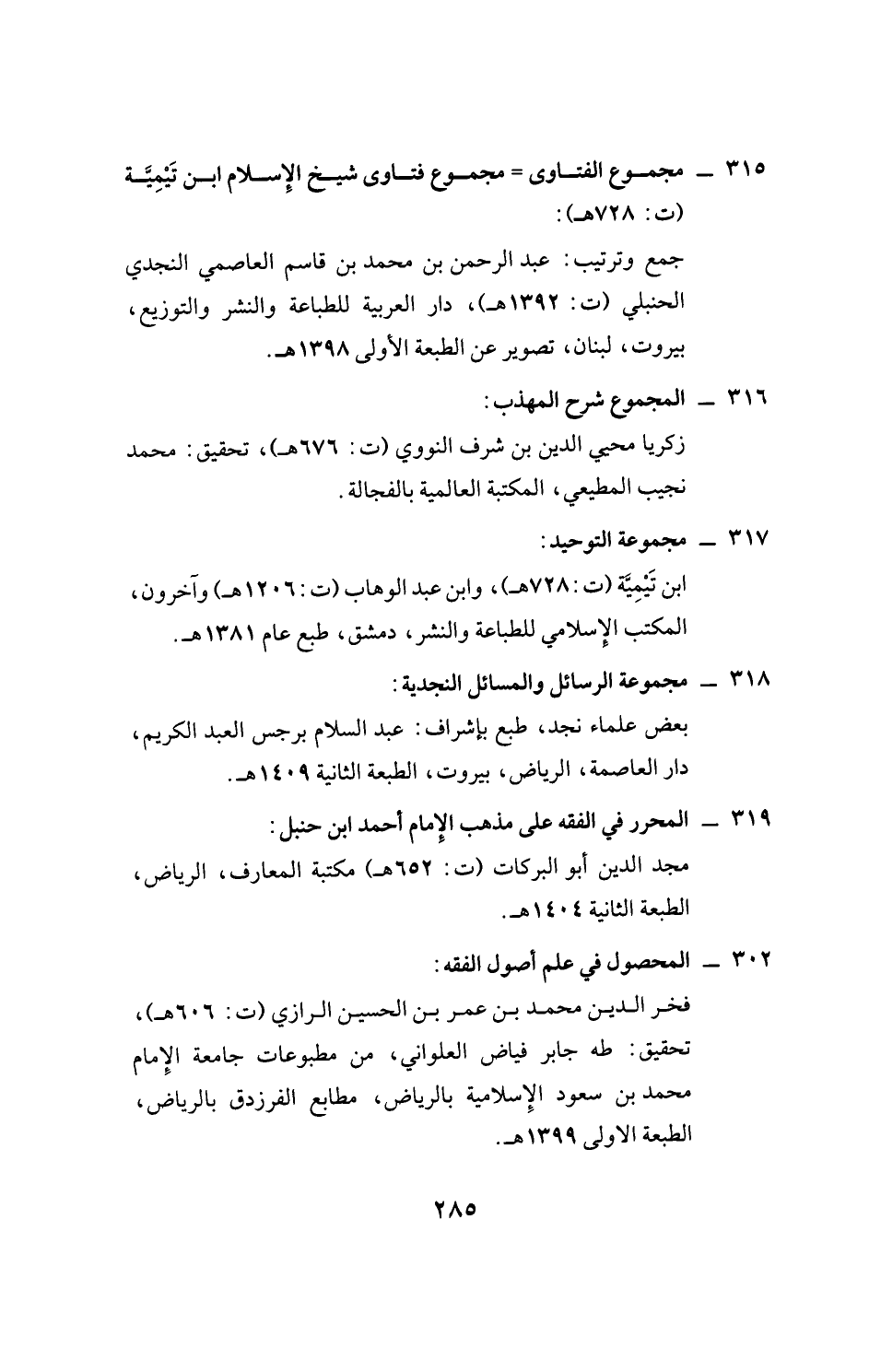 315 - مجموع الفتاوى = مجموع فتاوى شيخ الإسلام ابن تَيْمِيَّة (ت: 728 هـ):
