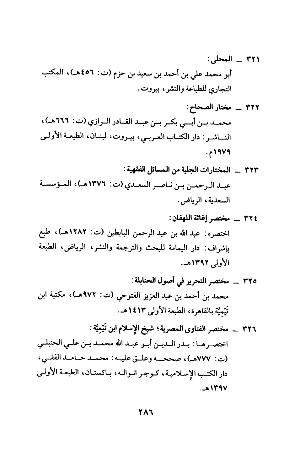اختصرها: بدر الدين أبو عبد الله محمد بن علي الحنبلي (ت: 777 هـ)، صححه وعلق عليه: محمد حامد الفقي، دار الكتب الإسلامية، كوجر انواله، باكستان، الطبعة الأولى 1397 هـ.