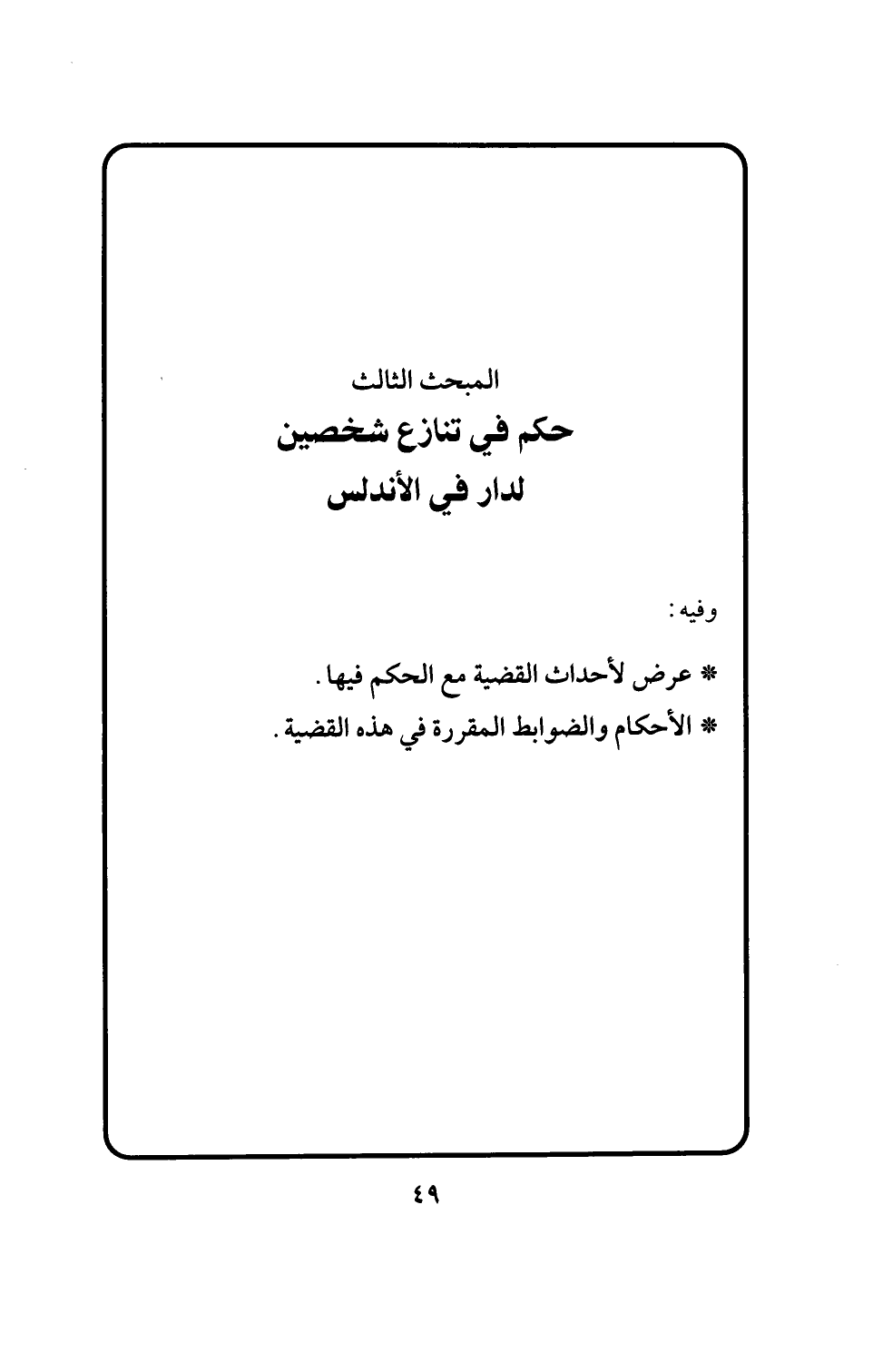 المبحث الثالث حكم في تنازع شخصين لدار في الأندلس
