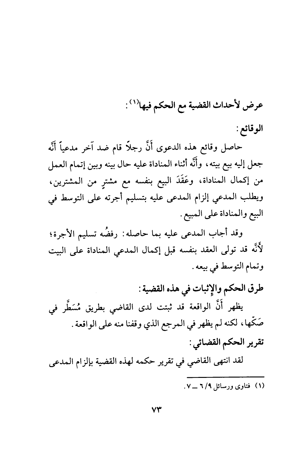 حاصل وقائع هذه الدعوى أَنَّ رجلًا قام ضد آخر مدعيًا أَنَّه جعل إليه بيع بيته، وأَنَّه أثناء المناداة عليه حال بينه وبين إتمام العمل من إكمال المناداة، وعَقَدَ البيع بنفسه مع مشترٍ من المشترين، ويطلب المدعي إلزام المدعى عليه بتسليم أجرته على التوسط في البيع والمناداة على المبيع.