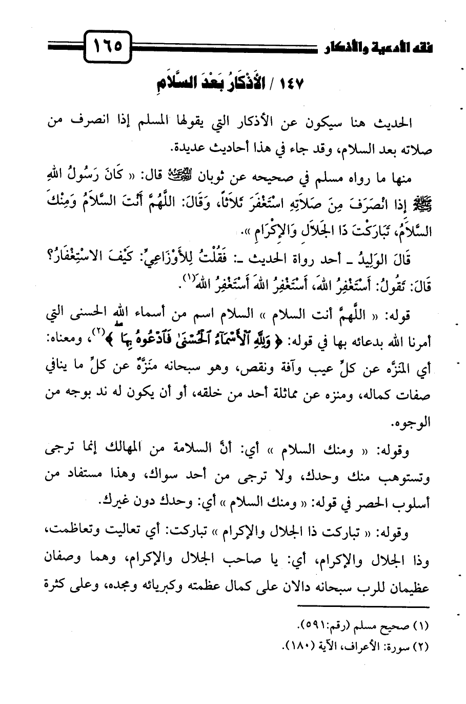 147 / الأَذْكَارُ بَعْدَ السَّلاَمِ
