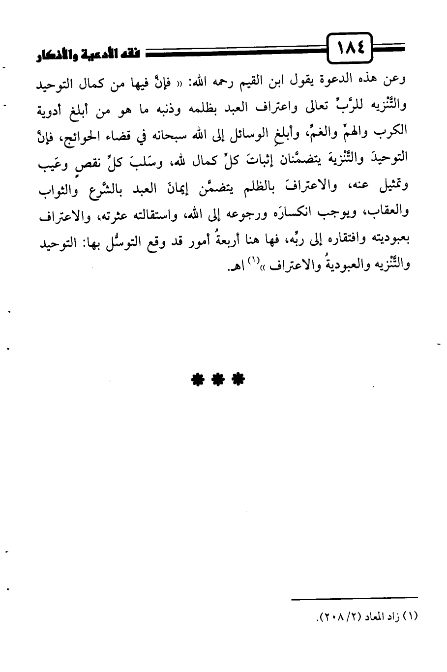 وعن هذه الدعوة يقول ابن القيم رحمه الله: "فإنَّ فيها من كمال التوحيد والتَّنْزيه للرَّبِّ تعالى واعتراف العبد بظلمه وذنبه ما هو من أبلغ أدوية الكرب والهمِّ والغمِّ، وأبلغِ الوسائل إلى الله سبحانه في قضاء الحوائج، فإنَّ التوحيدَ والتَّنْزيهَ يتضمَّنان إثباتَ كلِّ كمال لله، وسَلبَ كلِّ نقصٍ وعَيب وتمثيل عنه، والاعترافَ بالظلم يتضمَّن إيمانَ العبد بالشَّرع والثواب والعقاب، ويوجب انكسارَه ورجوعه إلى الله، واستقالته عثرته، والاعتراف بعبوديته وافتقاره إلى ربِّه، فها هنا أربعةُ أمور قد وقع التوسُّل بها: التوحيد والتَّنْزيه والعبوديةُ والاعتراف"1 اهـ.