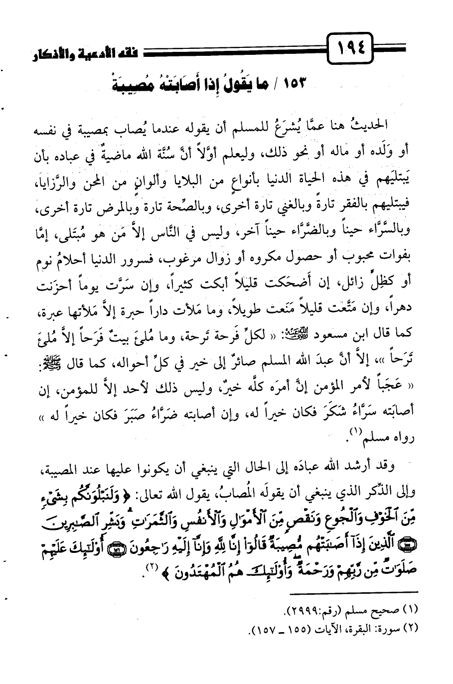 153 / ما يَقُولُ إِذا أَصَابَتْهُ مُصِيبَةٌ