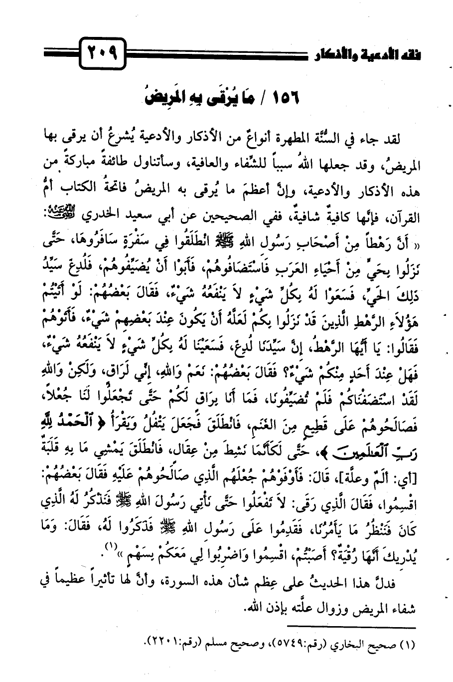 156 / مَا يُرْقَى بِهِ المَرِيضُ