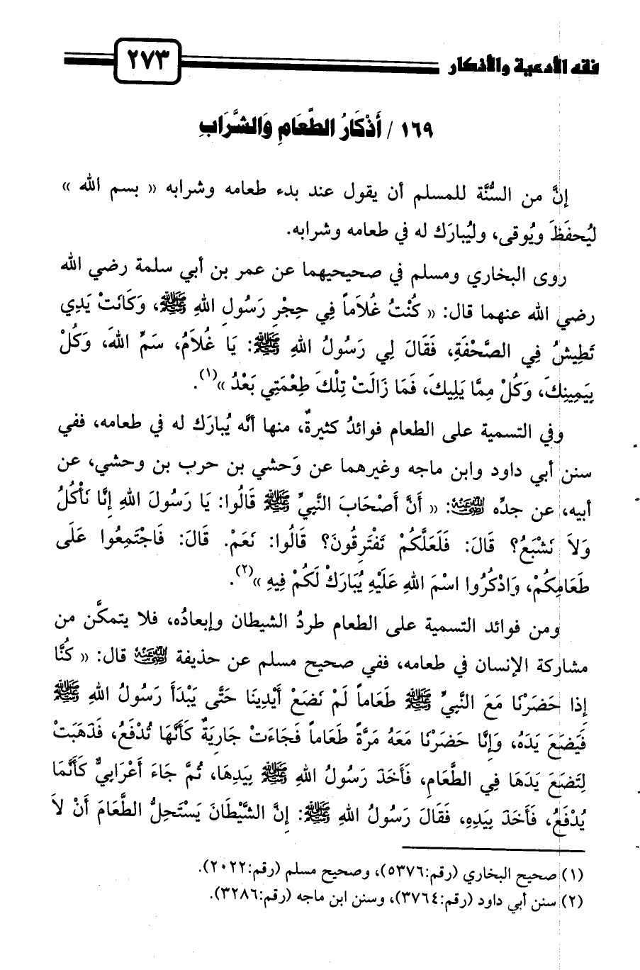 169 / أَذْكَارُ الطَّعَامِ وَالشَّرَابِ