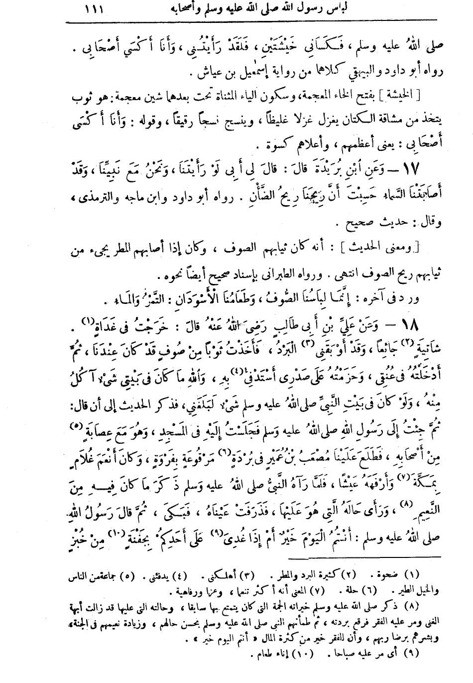 17 - وعن ابن بُريدةَ قال: "قال لي أبي: لو رأيتنا، ونحن مع نبينا، وقد أصابتنا السماءُ حسبْتَ أن رِيحَنَا ريحُ الضأن" رواه أبو داود وابن ماجة والترمذي، وقال: حديث صحيح.