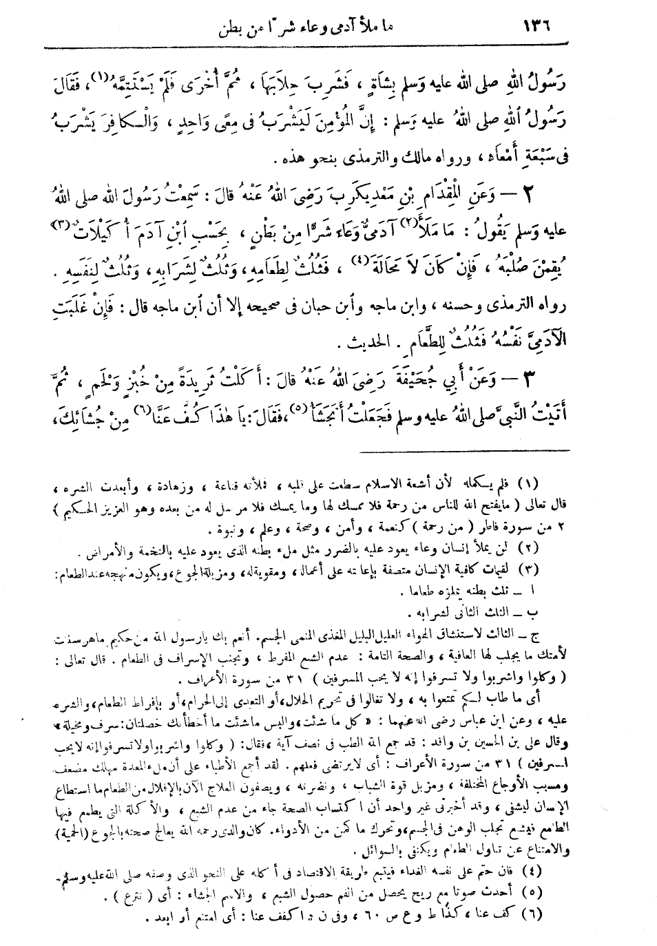 (¬2) لن يملأ إنسان وعاء يعود عليه بالضرر مثل ملء بطنه الذي يعود عليه بالتخمة والأمراض.