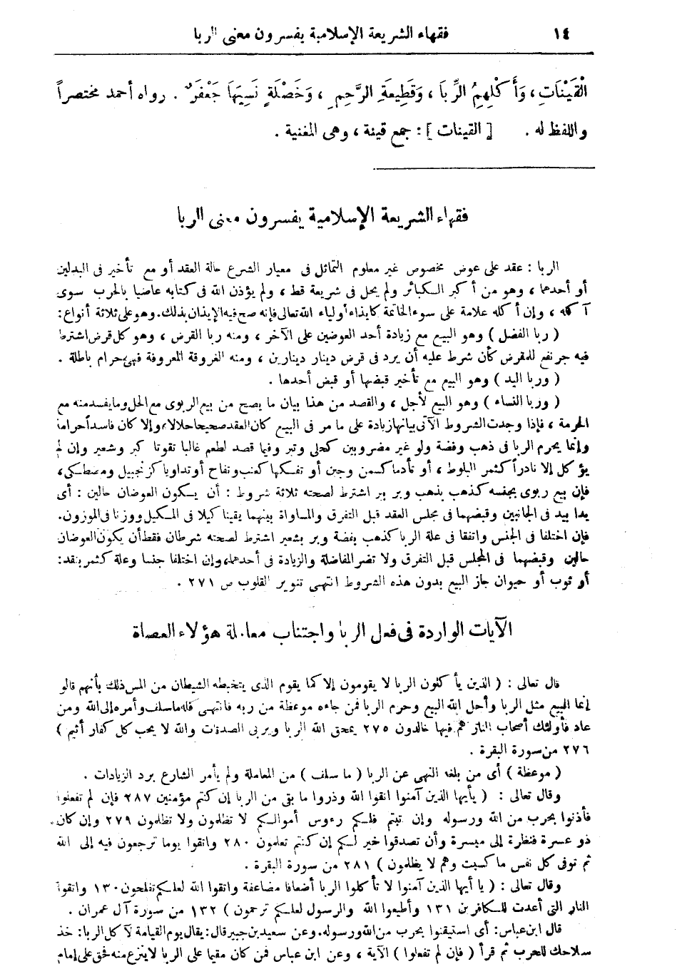 = فقهاء الشريعة الإسلامية يفسرون معنى الربا: