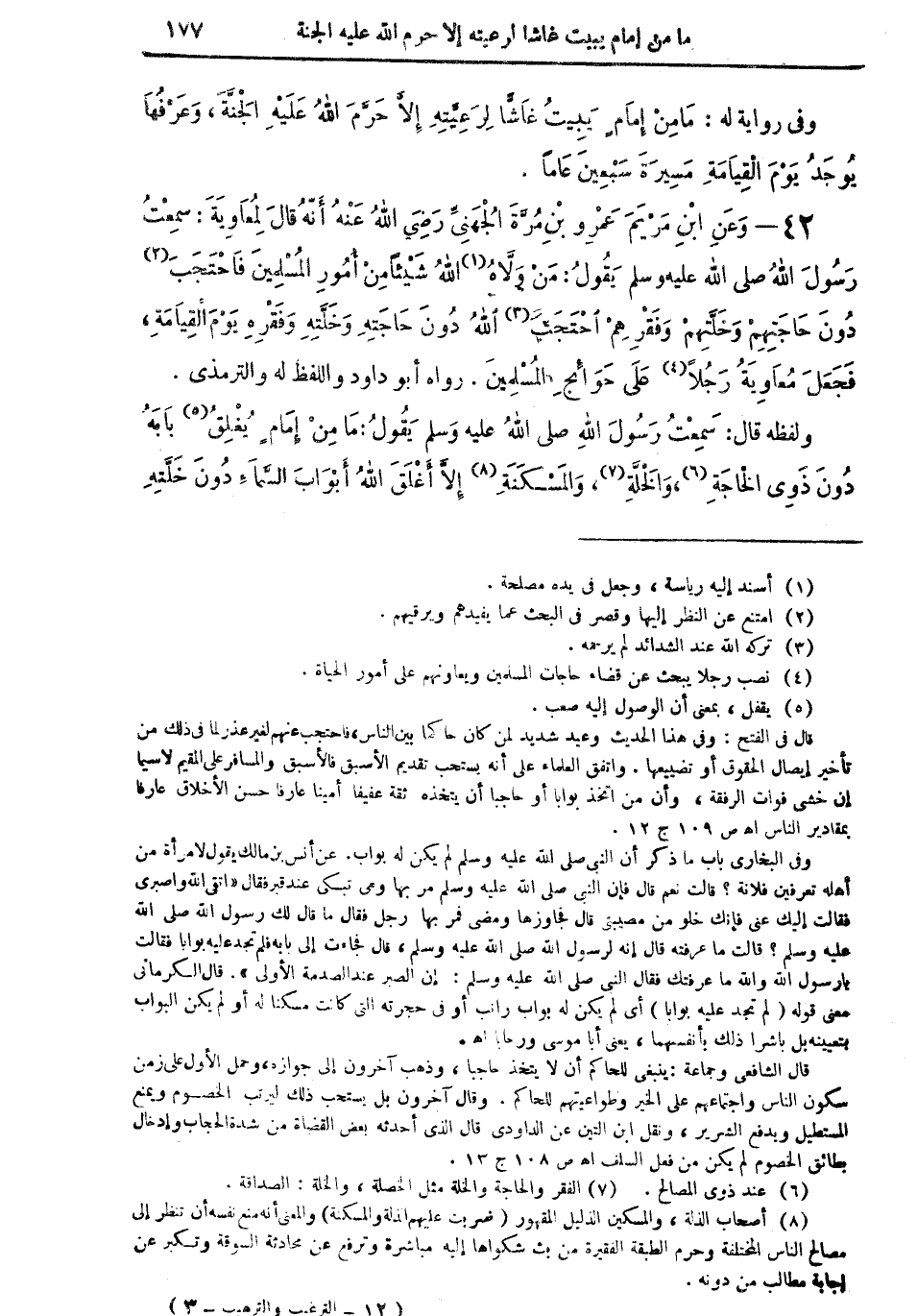 42 - وعن ابن مريم عمرو بن مُرَّةَ الجهني رضي الله عنه أنه قال لمعاوية: "سمعت رسول الله صلى الله عليه وسلم يقول: من وَلاَّهُ (¬1) الله شيئاً من أمور المسلمين فاحتجبَ (¬2) دون حاجتهم وَخَلَّتِهِمْ وفَقْرِهمْ احتجب (¬3) الله دون حاجته وَخَلَّتِهِ وفقرهِ يوم القيامة، فجعل معاوية رجلاً (¬4)