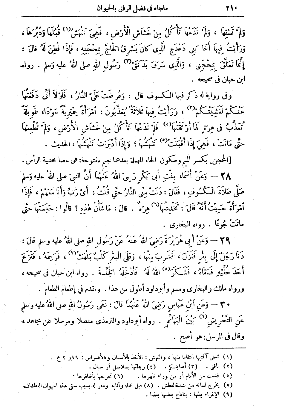 30 - وعن ابن عباس رضي الله عنهما قال: "نهى رسول الله صلى الله عليه وسلم عن التَّحْرِيشِ (¬9) بين البهائم" رواه أبو داود والترمذي متصلاً ومرسلاً عن مجاهد، وقال في المرسل: هو أصح.
