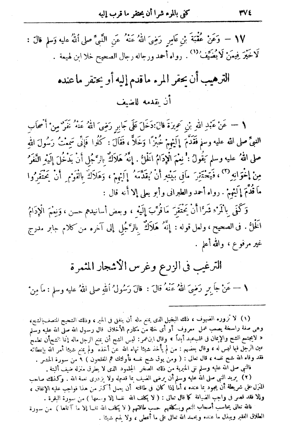 الترهيب أن يحتقر المرء ما قدم إليه أو يحتقر ما عنده أن يقدمه للضيف
