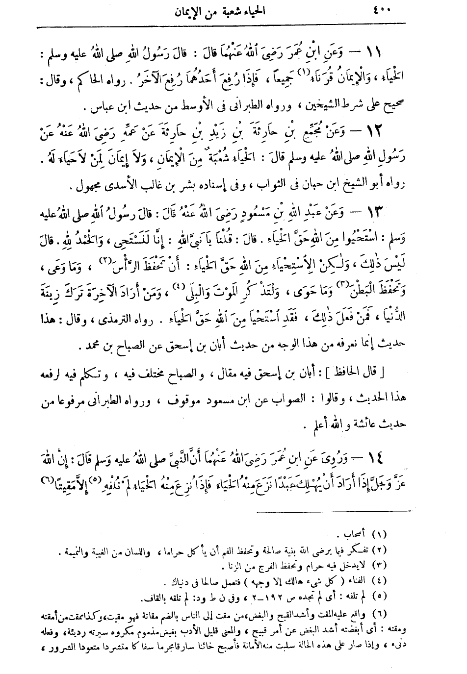 12 - وعن مُجَمِّعِ بن حارثةَ بن زيد بن حارثة عن عمه رضي الله عنه عن رسول الله صلى الله عليه وسلم قال: "الحياء شُعبةٌ من الإيمان، ولا إيمان لمن لا حياء له" رواه أبو الشيخ ابن حبان في الثواب، وفي إسناده بشر بن غالب الأسدي مجهول.