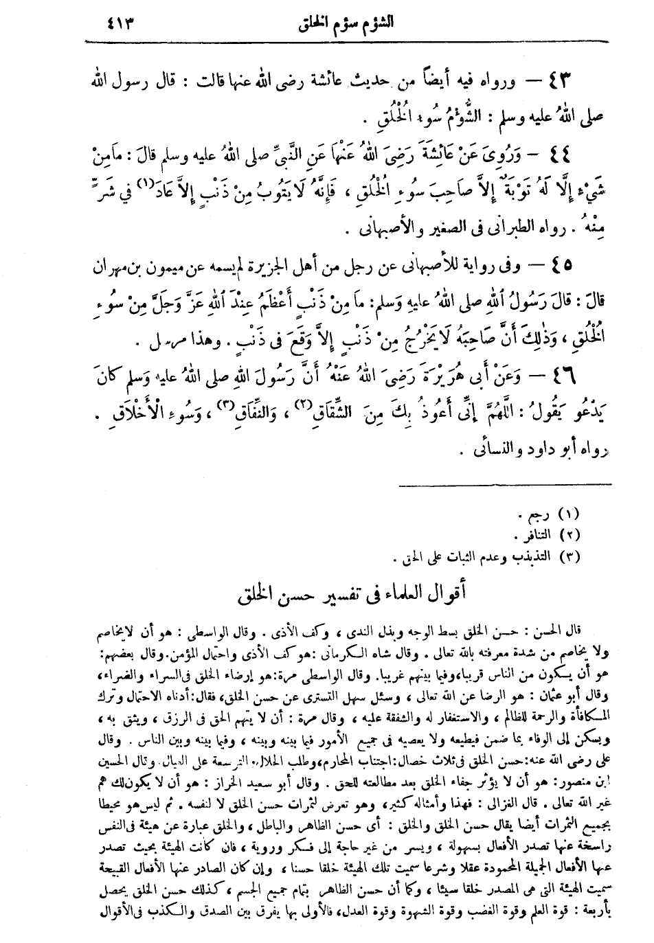 46 - وعن أبي هريرة رضي الله عنه أن رسول الله صلى الله عليه وسلم: "كان يدعو يقول: اللهم إني أعوذ بك من الشقاق (¬2)، والنفاق (¬3) وسوء الأخلاق" رواه أبو داود والنسائي.