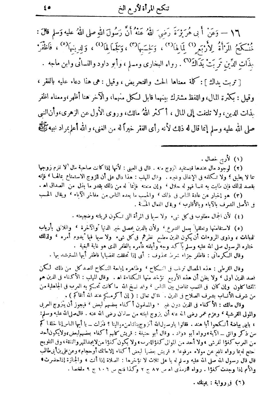 16 - وعن أبي هريرة رضي الله عنه أن رسول الله صلى الله عليه وسلم قال: "تُنْكَحُ المرأة لأربعٍ (¬1) لِمَالِها (¬2) وَلِحَسَبِها (¬3)، ولجمالها (¬4)، ولدينها (¬5)،