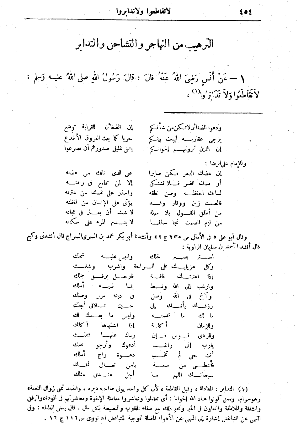 1 - عن أنسٍ رضي الله عنه قال: قال رسول الله صلى الله عليه وسلم: "لا تَقَاطَعُوا ولا تَدَابَرُوا (¬1)،