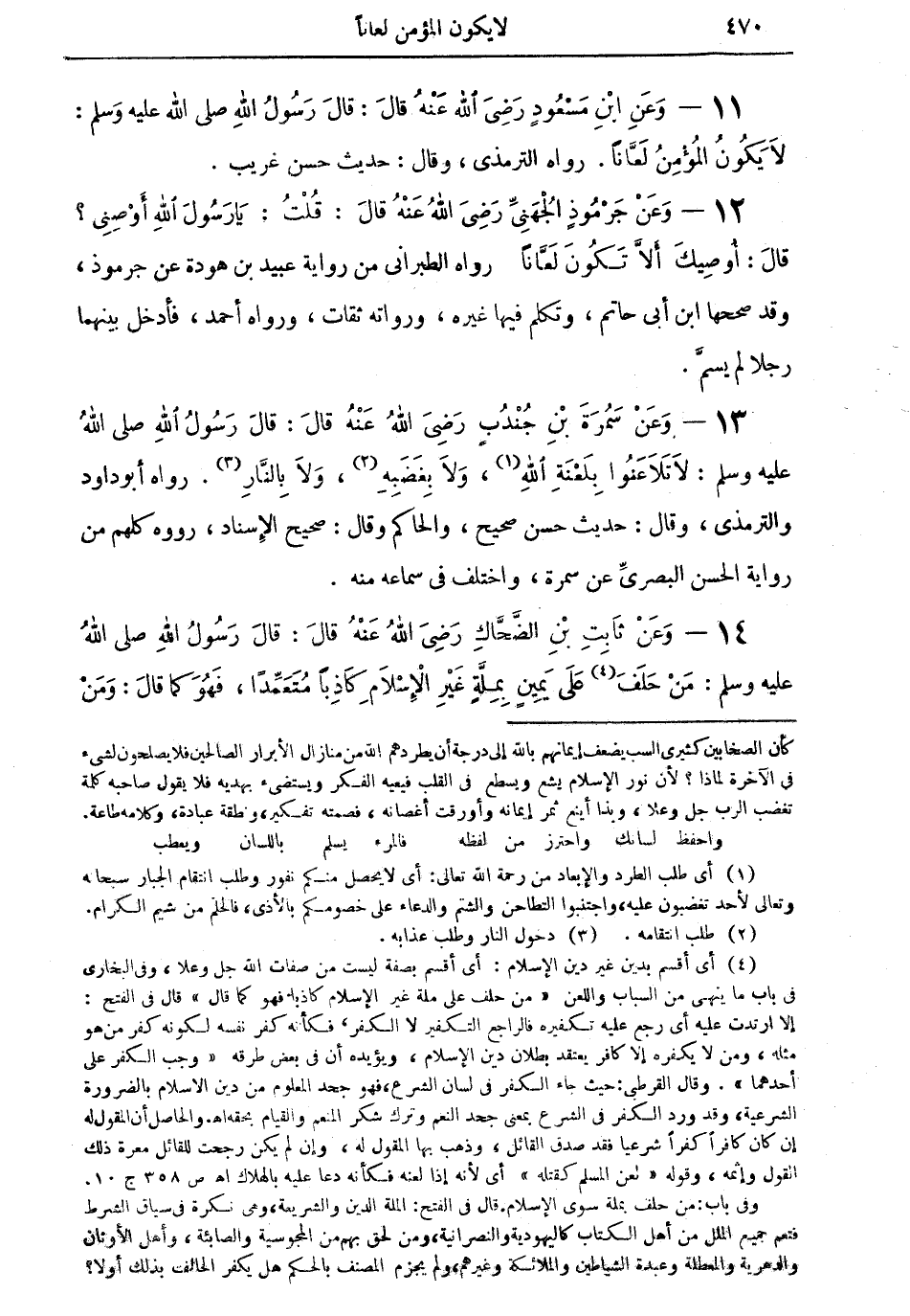 11 - وعن ابن مسعودٍ رضي الله عنه قال: قال رسول الله صلى الله عليه وسلم: "لا يكون المؤمنُ لعاناً" رواه الترمذي، وقال: حديث حسن غريب.