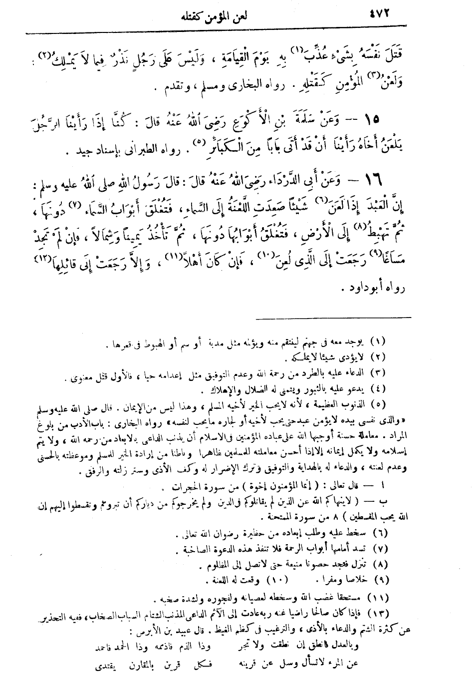 15 - وعن سلمة بن الأكوع رضي الله عنه قال: "كنا إذا رأينا الرجل يَلْعَنُ (¬4) أخاهُ رأينا أن قد أتى باباً من الكبائر (¬5) " رواه الطبراني بإسناد جيد.