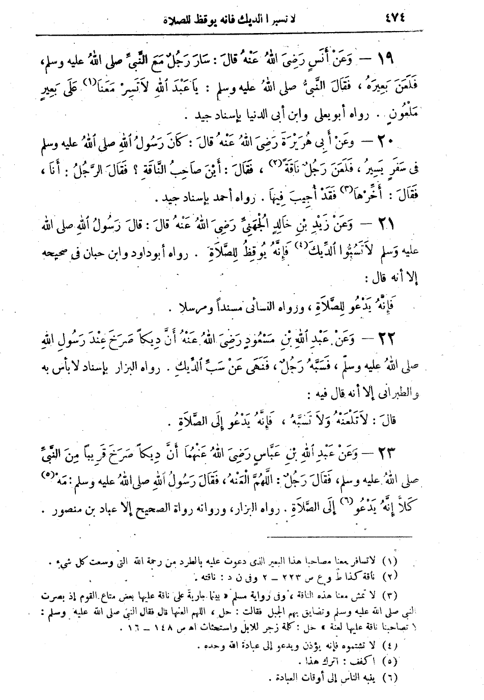 20 - وعن أبي هريرة رضي الله عنه قال: "كان رسول الله صلى الله عليه وسلم في سفر يسيرُ، فلعن رجلٌ ناقةً (¬2)، فقال: أين صاحبُ الناقة؟ فقال الرجلُ: أنا، فقال: أخِّرْهَا (¬3) فقد أُجيبَ فيها" رواه أحمد بإسناد جيد.