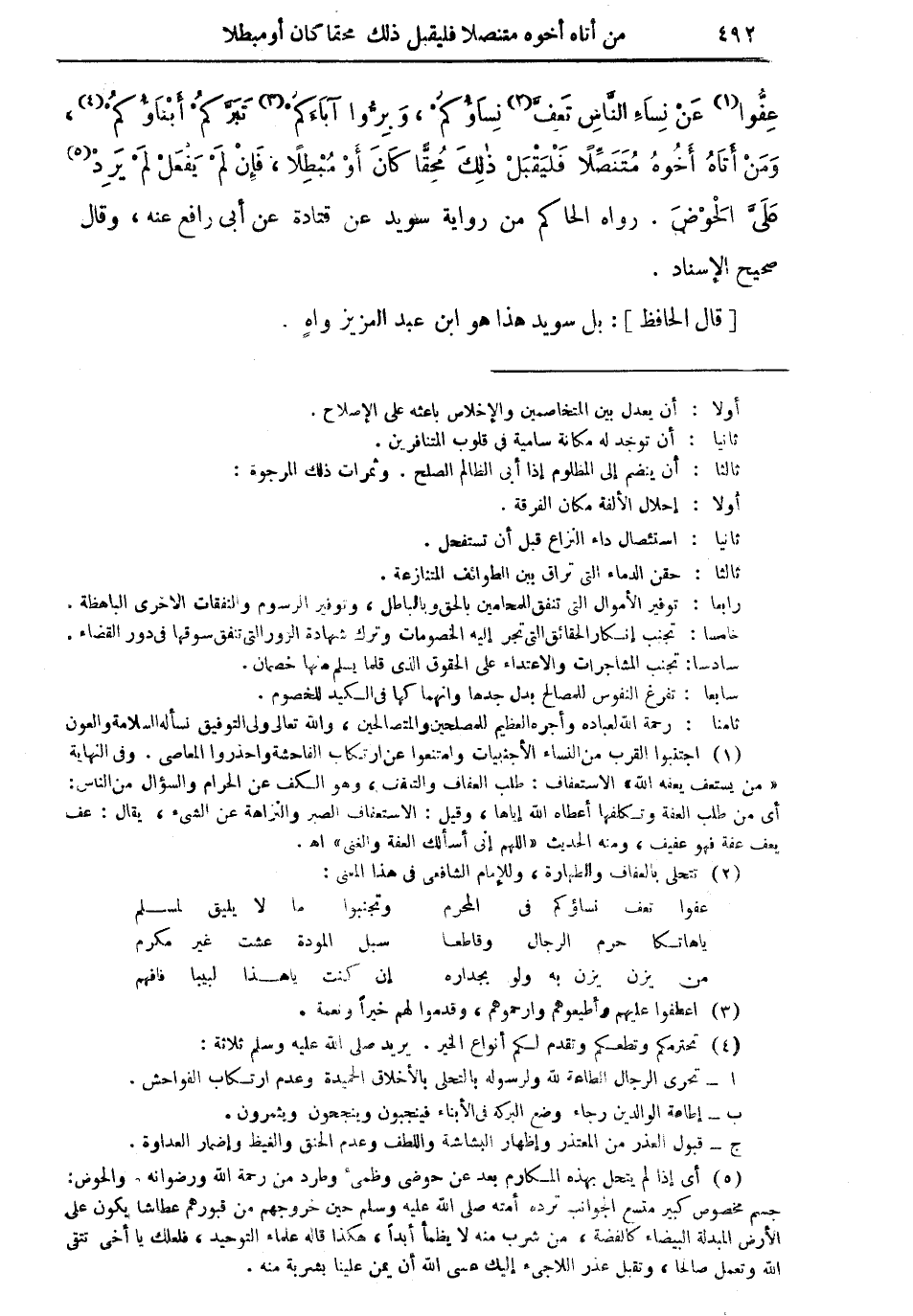 ثامناً: رحمة الله لعباده وأجره العظيم للمصلحين والمتصالحين، والله تعالى ولي التوفيق، نسأله السلامة والعون.