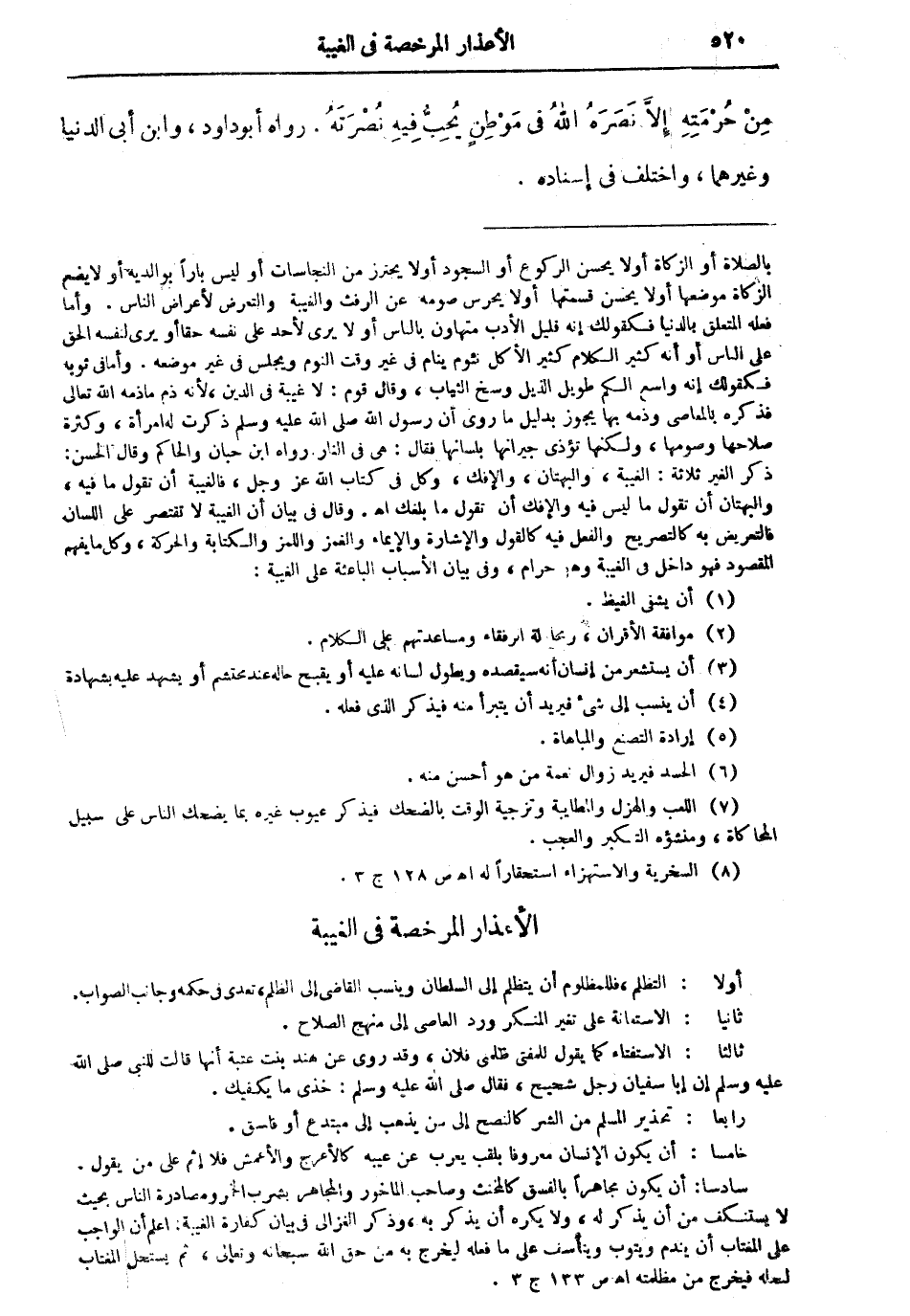 الأعذار المرخصة في الغيبة: