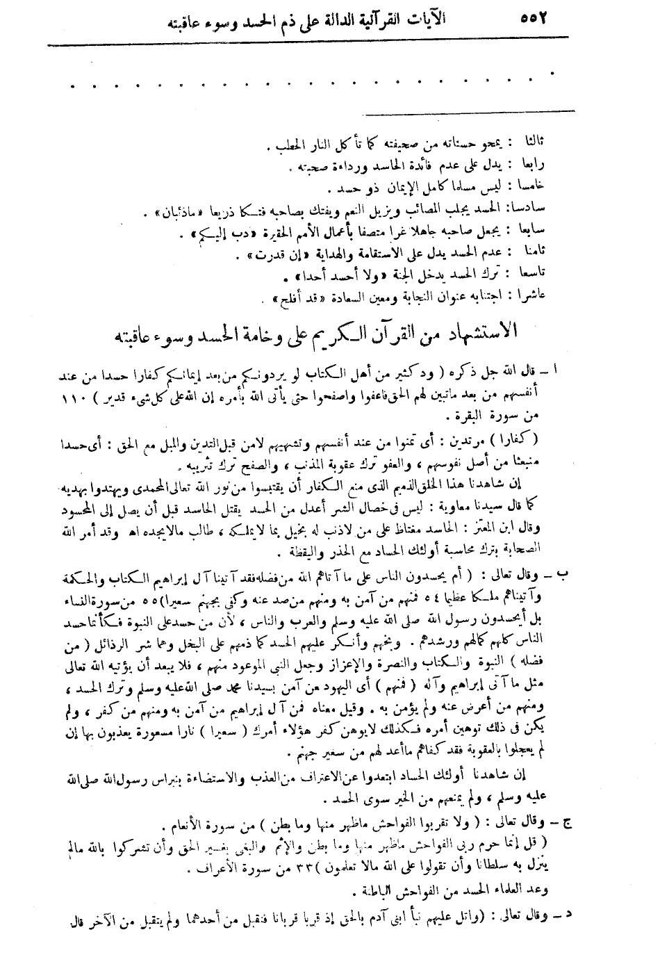 الاستشهاد من القرآن الكريم على وخامة الحسد وسوء عاقبته: