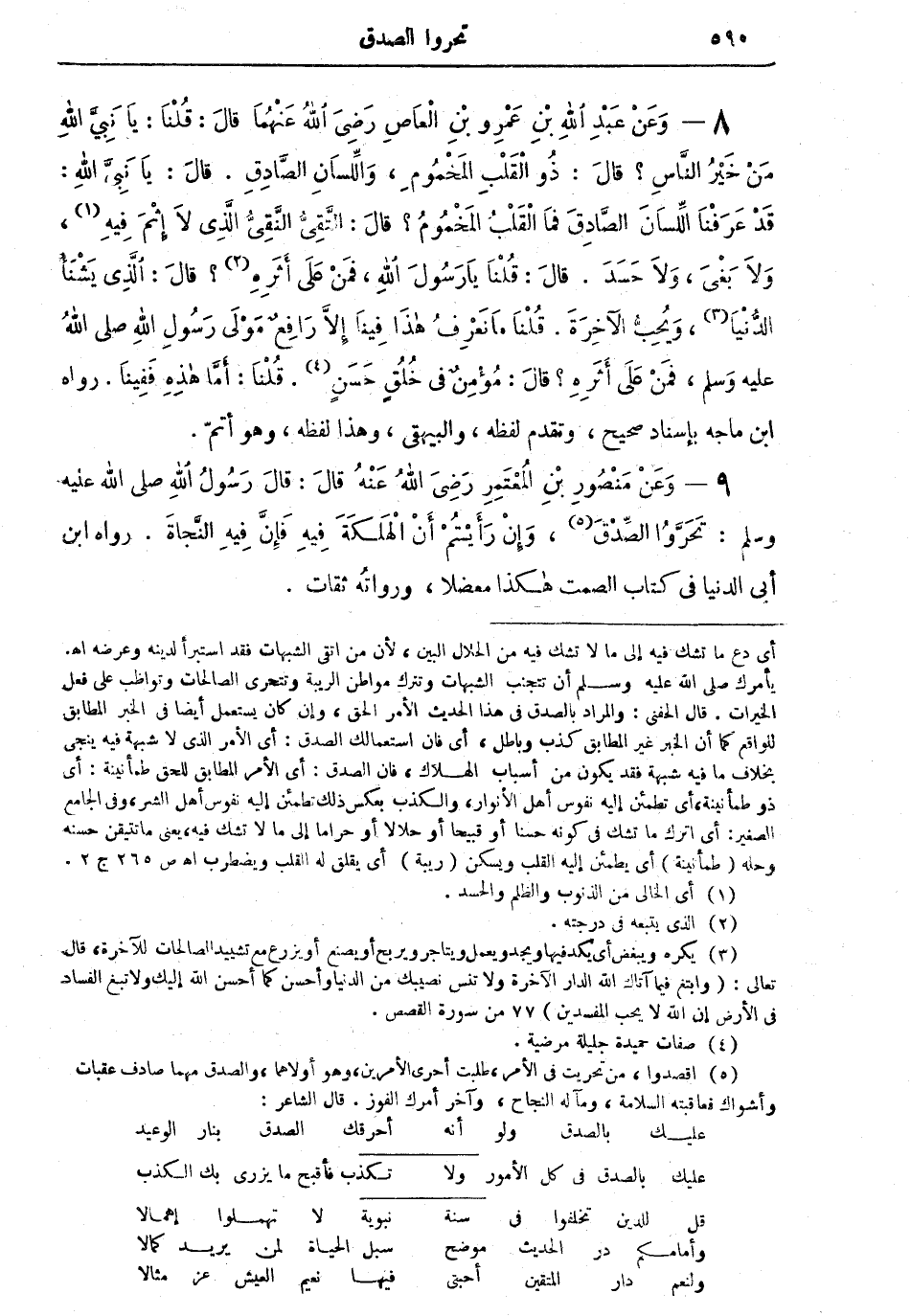(¬5) اقصدوا، من تحريت في الأمر، طلبت أحرى الأمرين، وهو أولاهما، والصدق مهما صادف عقبات، وأشواك فعاقبته السلامة، ومآله النجاح، وآخر أمرك الفوز. قال الشاعر: