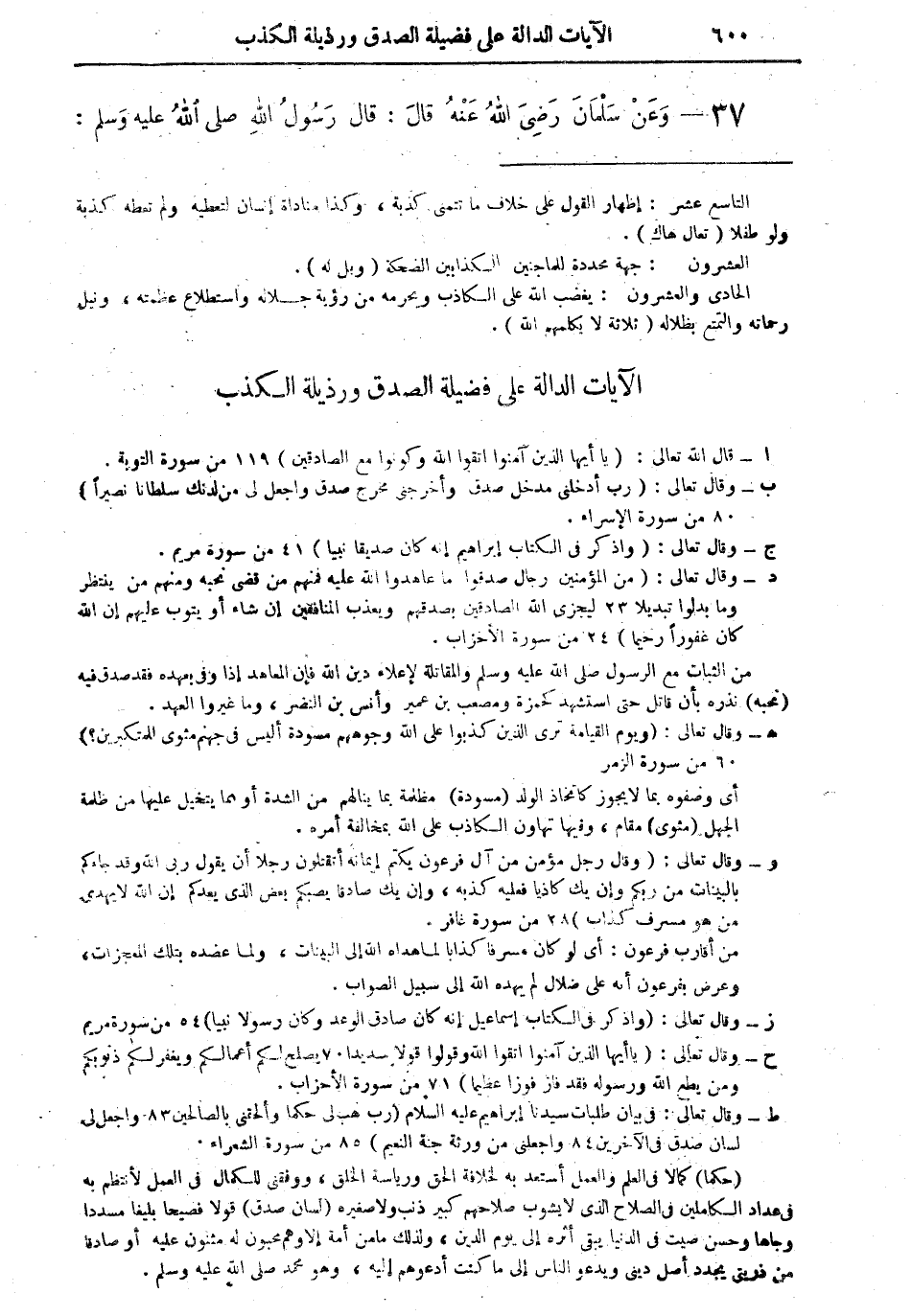 (أ) قال الله تعالى: "يا أيها الذين آمنوا اتقوا الله وكونوا مع الصادقين" (119 من سورة التوبة).