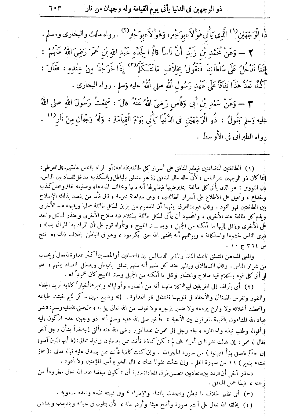 ذا الوجهين (¬1) الذي يأتي هؤلاء بوجهٍ، وهؤلاء بوجهٍ (¬2) " رواه مالك والبخاري ومسلم.