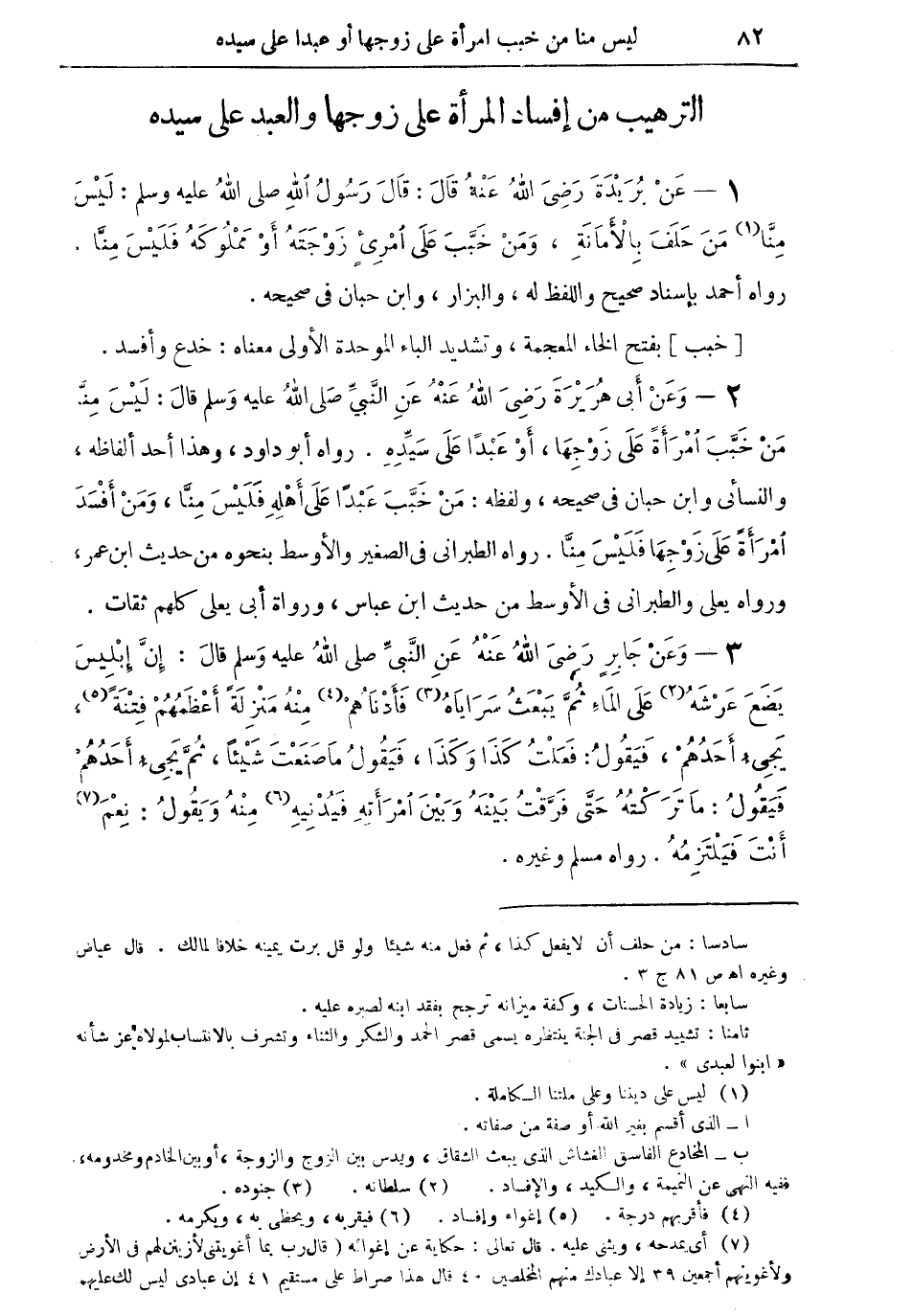 الترهيب من إفساد المرأة على زوجها والعبد على سيده