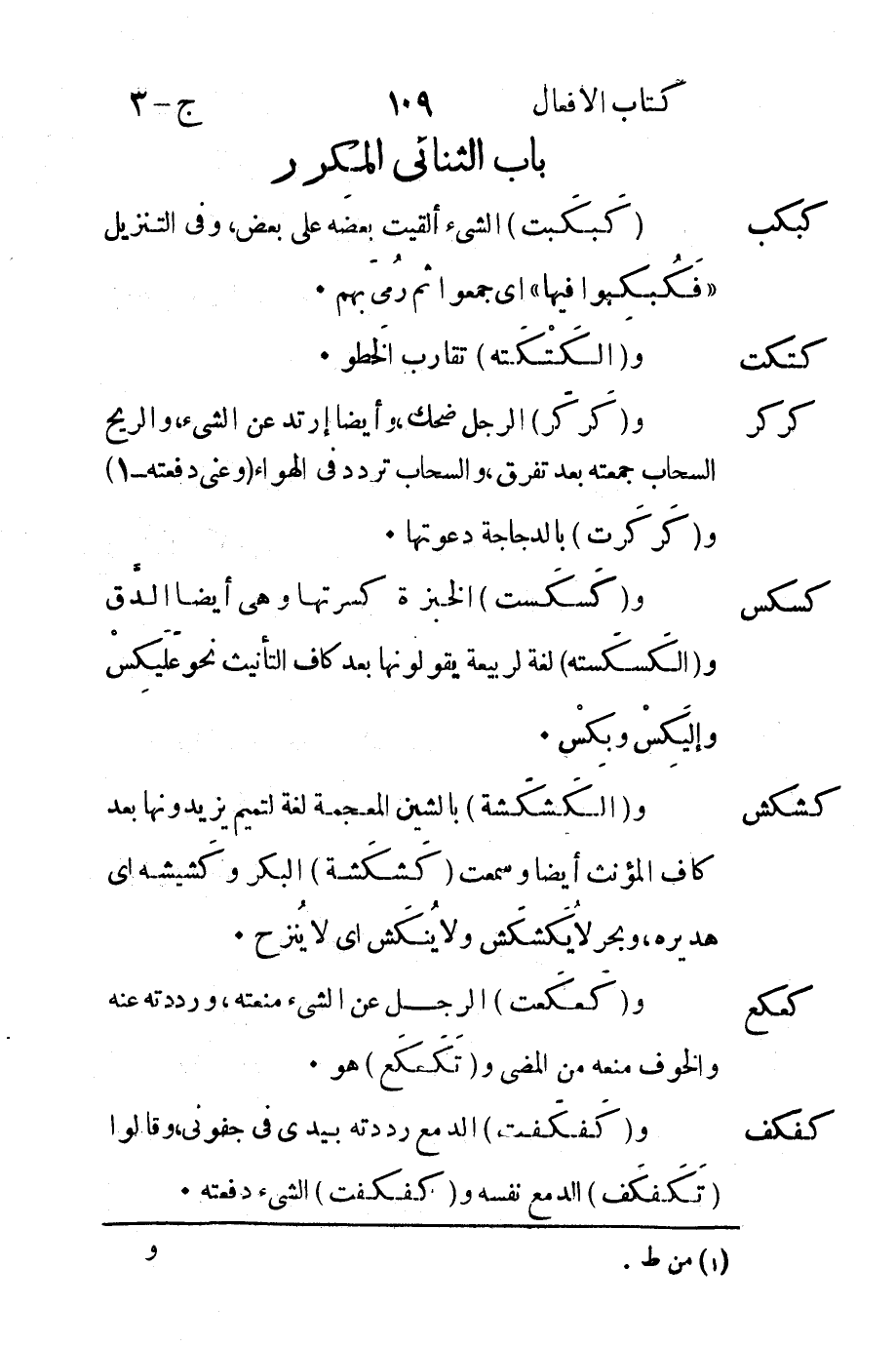 "كَبكَبت" الشيء ألقيت بعضه على بعض وفي التنزيل {فَكُبْكِبُوا فِيهَا} أي جمعوا ثم رُميَ بهم.
