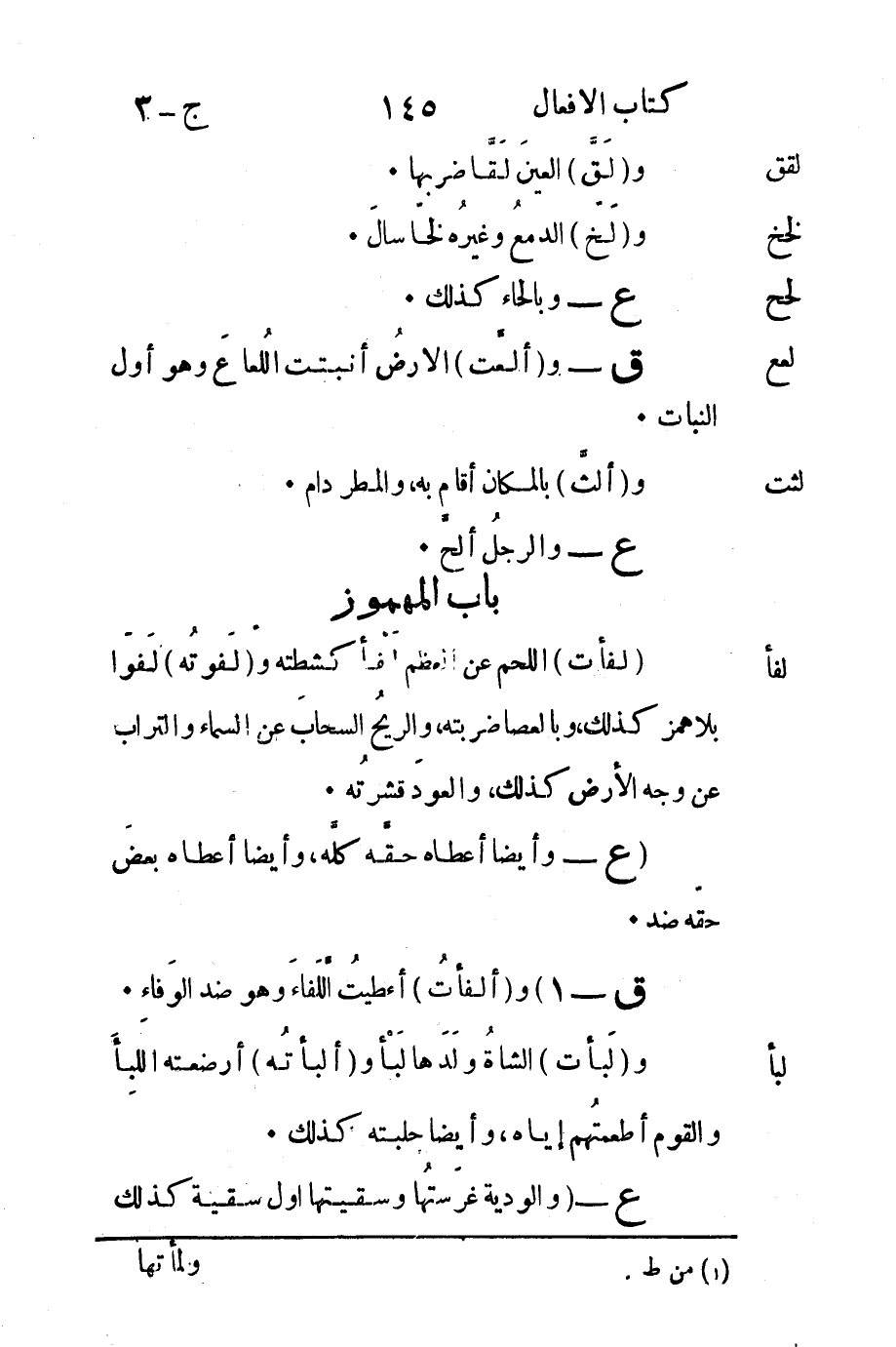 ق –1" و "ألفأتُ" أعطيتُ الَّلَفاءَ وهو ضد الوَفاءِ.