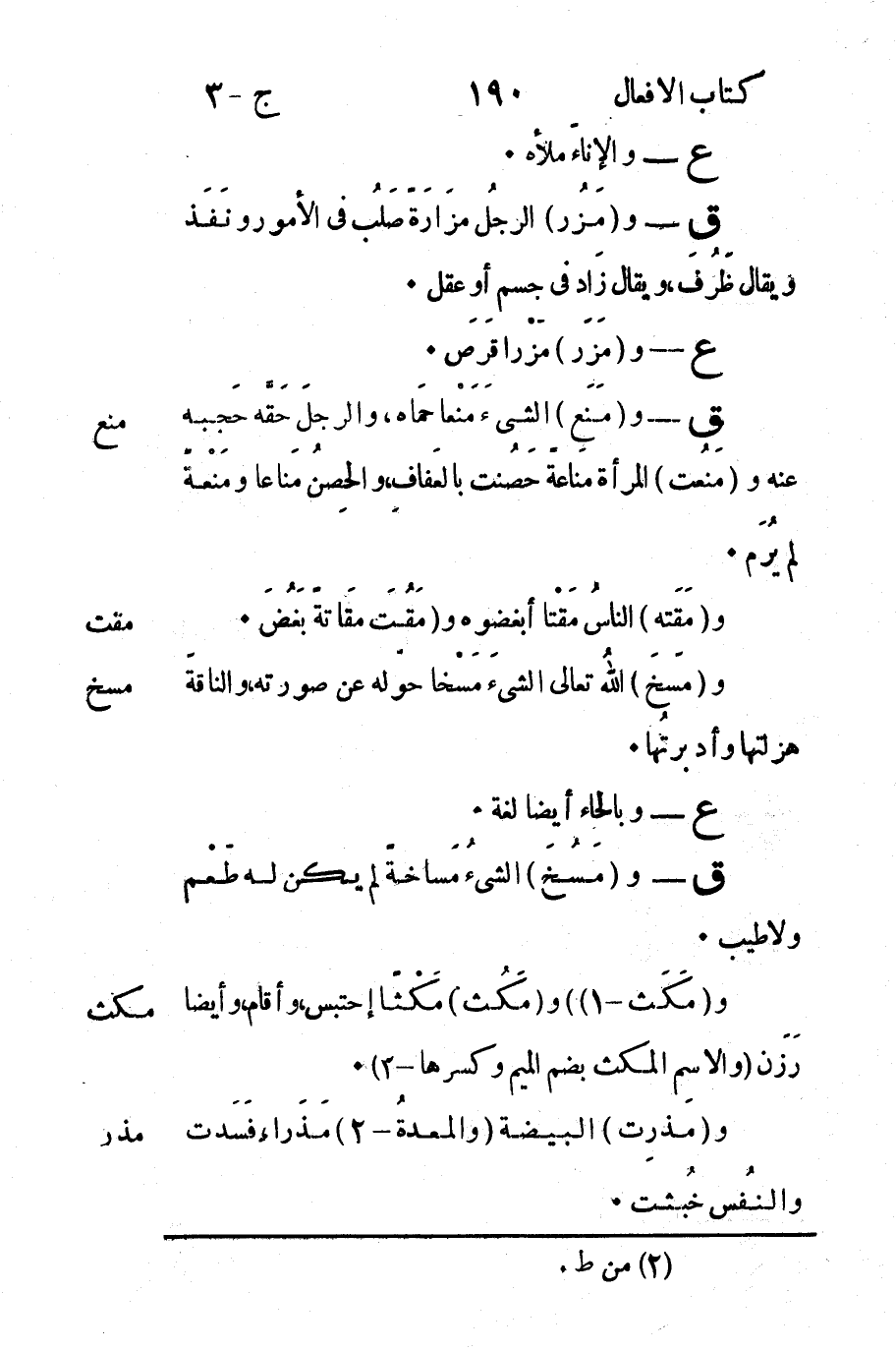 مكث: و "مَكَث -1" و "مَكُث" مَكْثاً إحتبس وأقام وأيضاً رَزَن "والاسم المكث بضم الميم وكسرها -3".